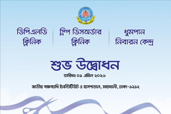 আজ পহেলা এপ্রিল ২০২৬ হতে জাতীয় বক্ষব্যাধি ইন্সটিটিউট ও হাসপাতালের বহির্বিভাগে বিশেষায়িত ক্লিনিক সেবা চালু হয়েছে।